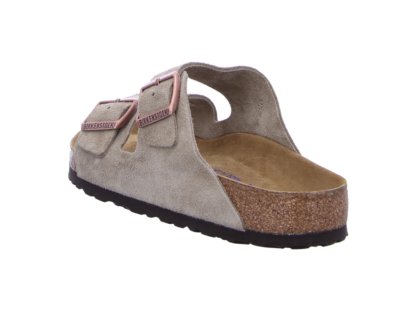 Hier handelt es sich um ein Fußbett mit Weichbettung, dabei wird das anatomisch geformte Kork-Latex-Fußbett mit Veloursleder-Decksohle mit einer vorgeformte Schaumeinlage aufgepolstert, dies führt zu einem noch angenehmeren Tragegefühl.
